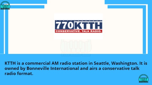 KTTH AM 770 is a broadcast Radio station from Seattle, Washington, United States, providing Conservative Talk, News, Politics, Information and Business programs.